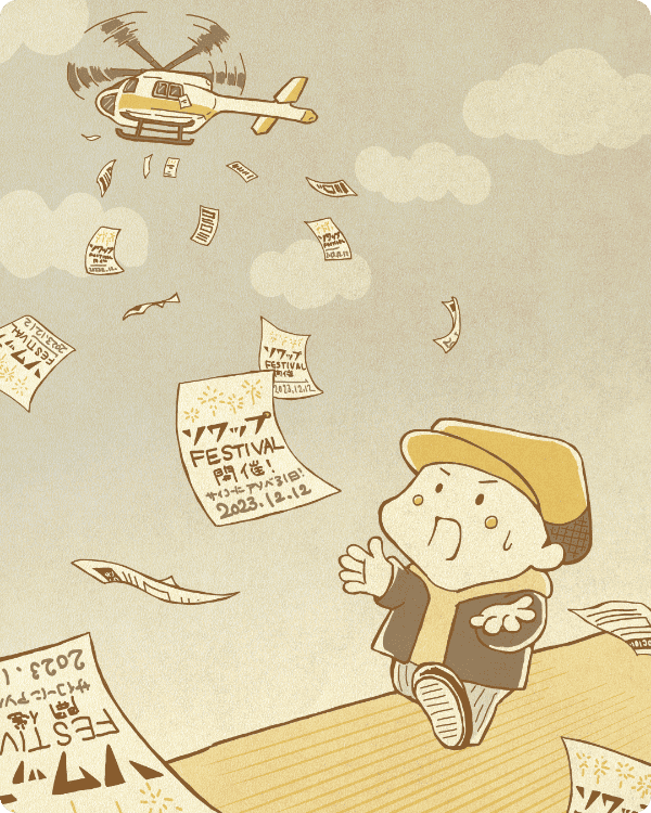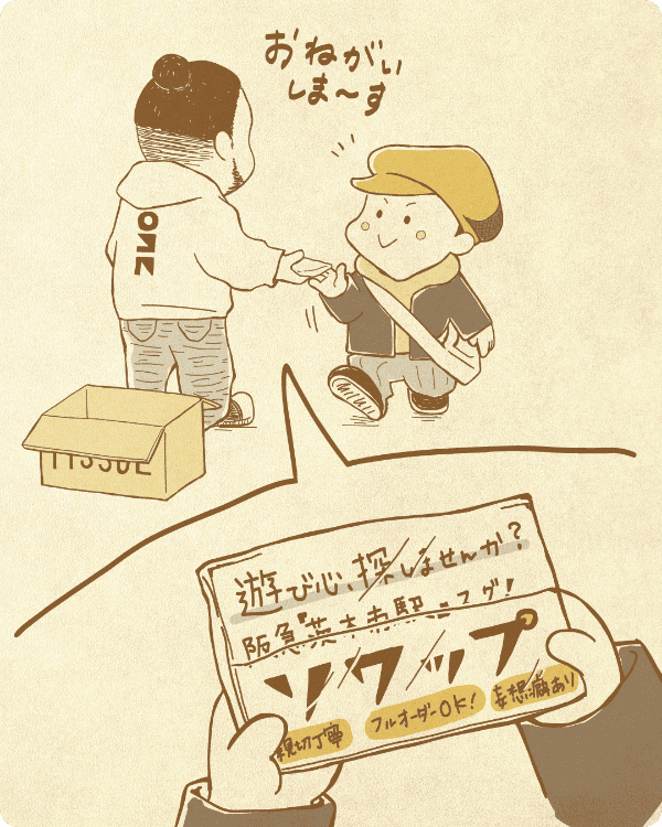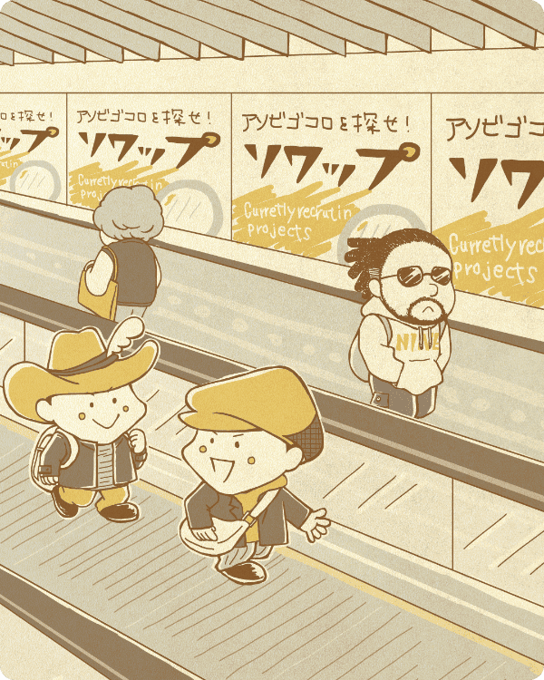 ソワップの活動やアソビゴコロのあるプロモーションを紹介しています。
